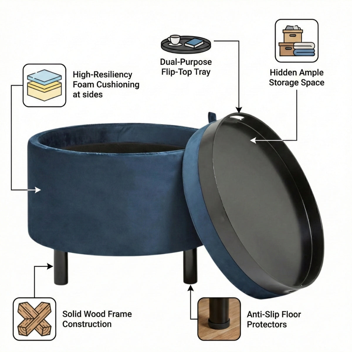 The Ashtin Round Storage Sability is a versatile and stylish storage solution 🌟 that effortlessly doubles as a chic ottoman while offering ample hidden space to keep your home clutter-free 🗄️ Featuring a practical flip-top tray 🛋️, it provides easy access to stored items and a sturdy surface for serving snacks or coffee during gatherings ☕ Its round silhouette and elegant finish 🎨 add a modern yet inviting touch, blending beautifully with both contemporary and traditional interiors—making it as functional as it is fashionable.