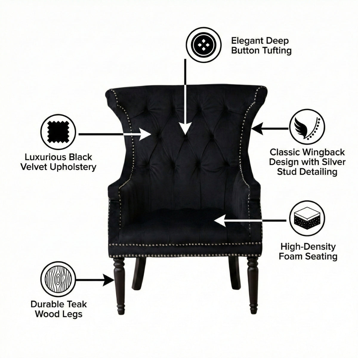 Drako Black Velvet Wingback Armchair: A Perfect Blend of Luxury and Comfort