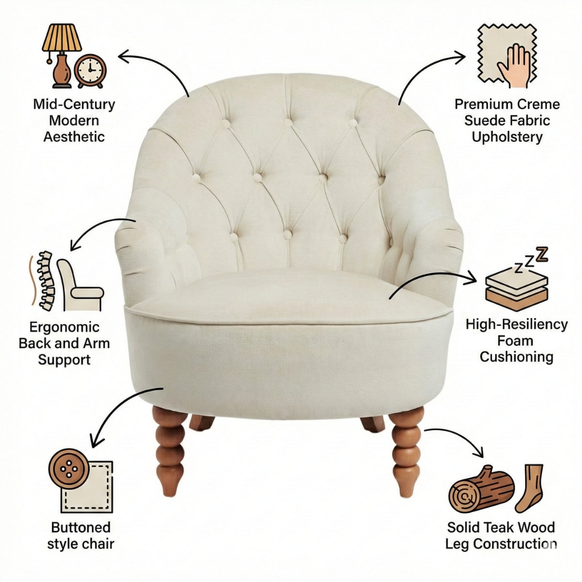 • Fabric Material: Creme Sued Fabric